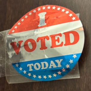 (I vote because it’s my civic duty, and those ugly stickers look like condescending participation trophies to me.)